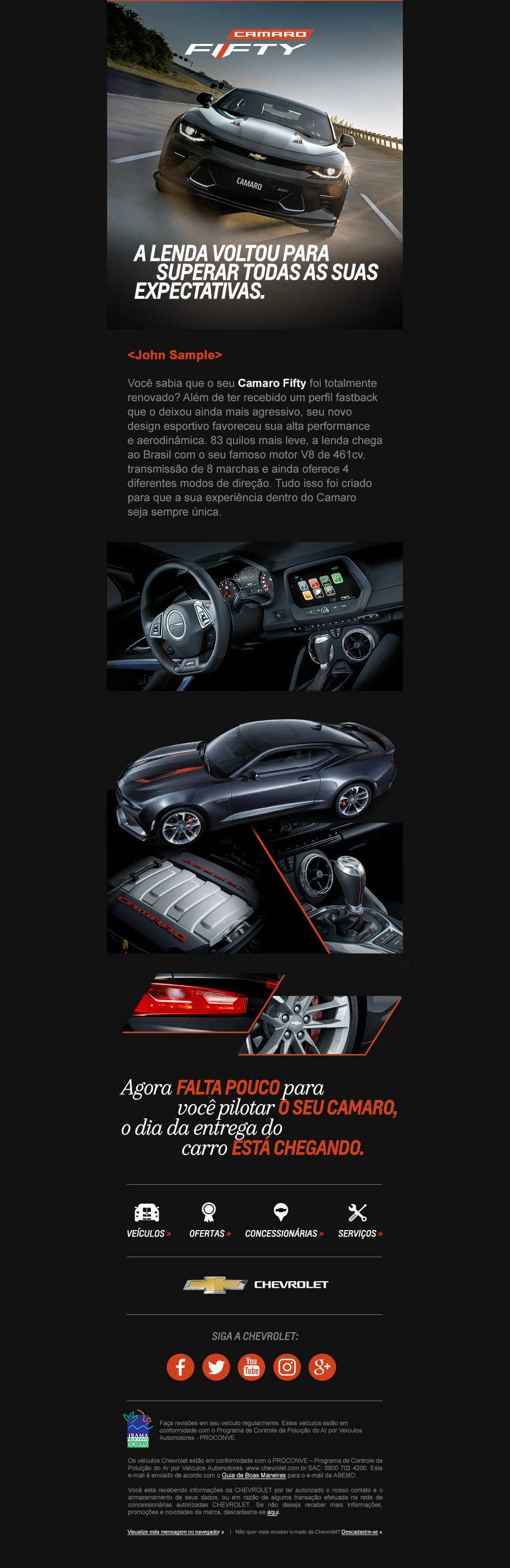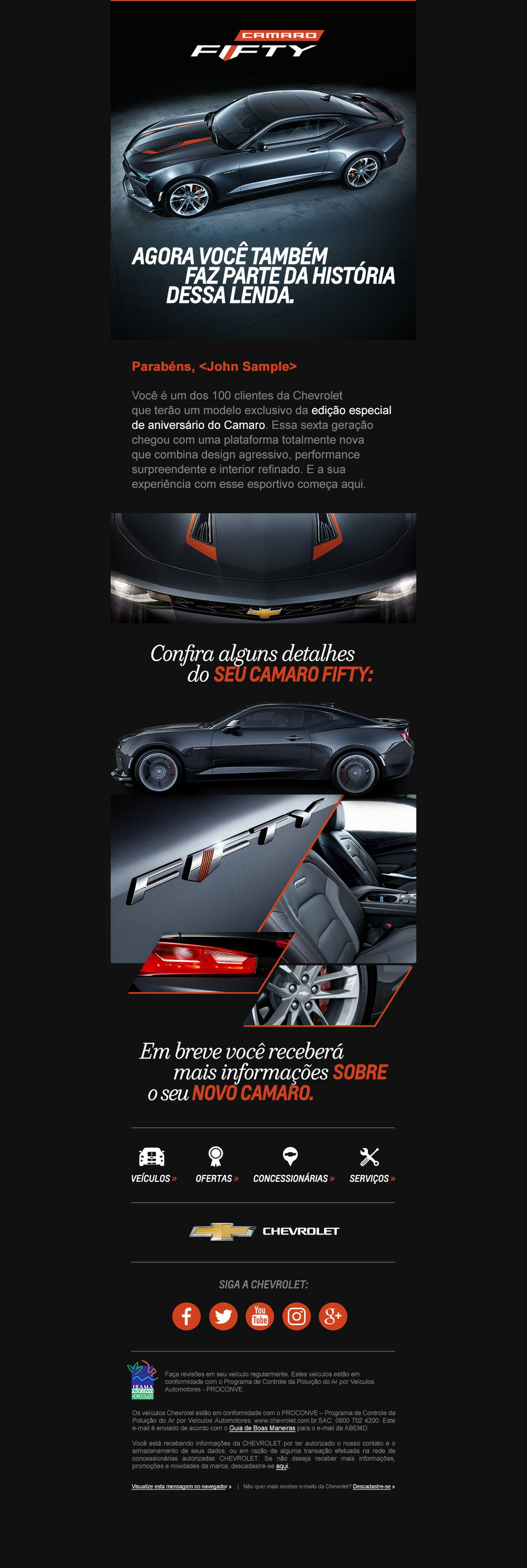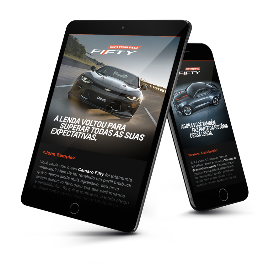 Tive a oportunidade de criar novos modelos e layouts de e-mails com foco no mobile (Mobile First) para divulgar o projeto de edição especial de 50 anos do Camaro: