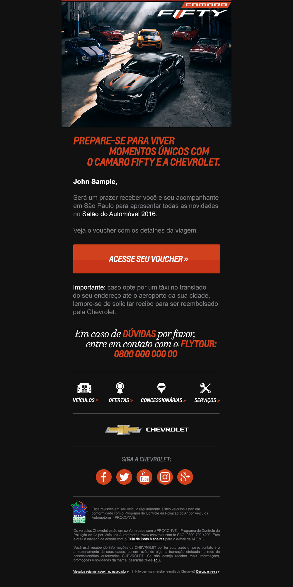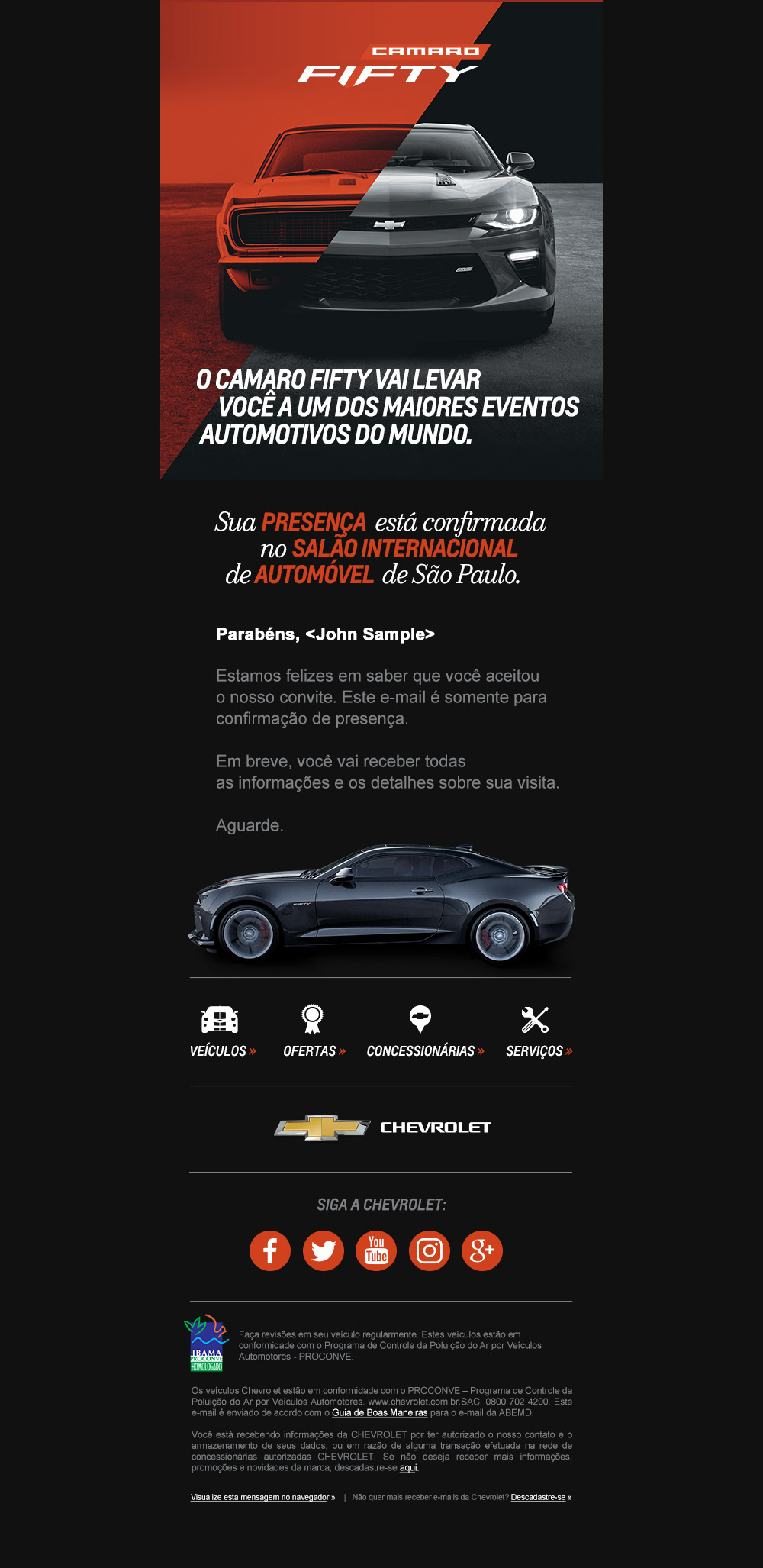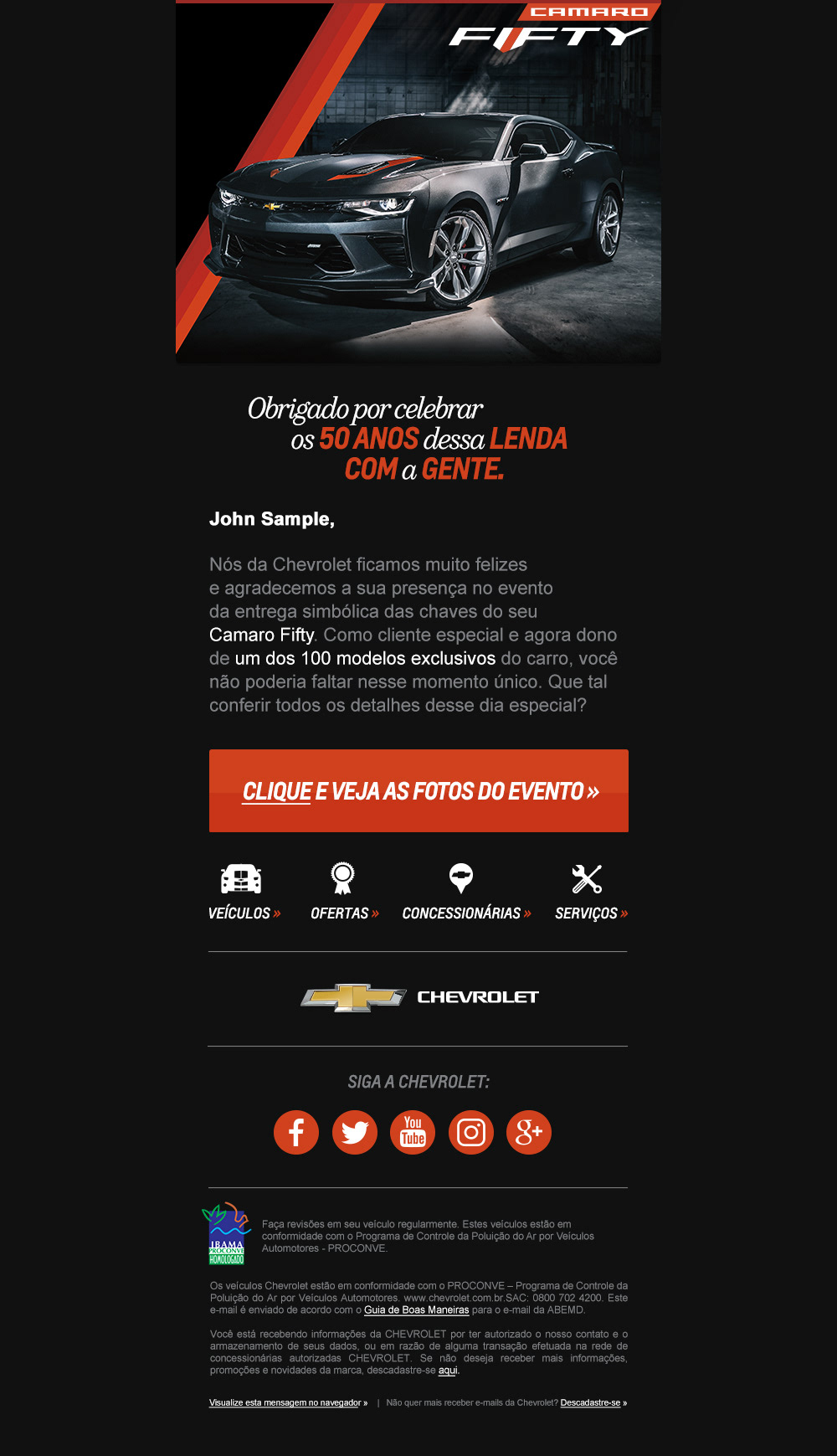 Tive a oportunidade de criar novos modelos e layouts de e-mails com foco no mobile (Mobile First) para divulgar o projeto de edição especial de 50 anos do Camaro: